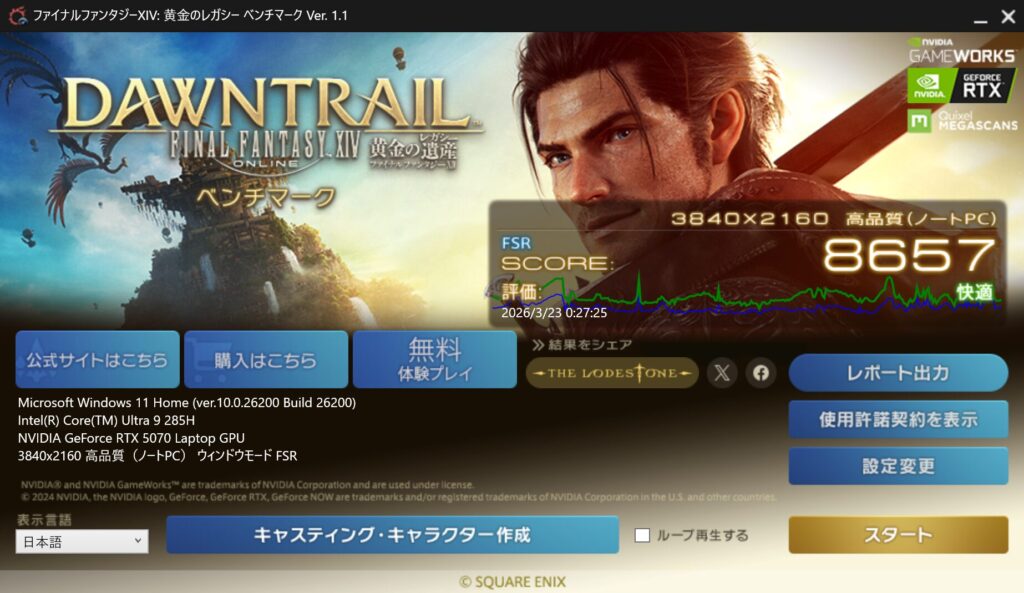 今回お借りしたモデルにはNVIDIA® GeForce RTX™ 5070 Laptop GPU(8GB GDDR7)が搭載されています。