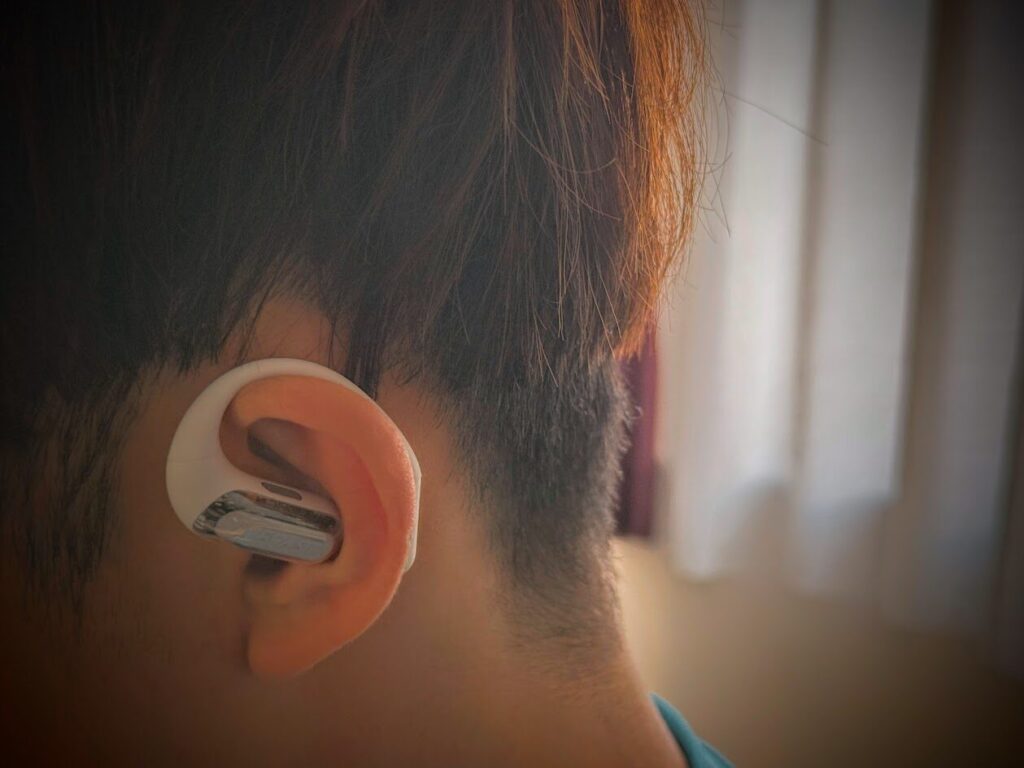 オープンイヤー型で耳を塞がない設計なので、音楽を聴きながらでも周囲の音がしっかり聞こえます。