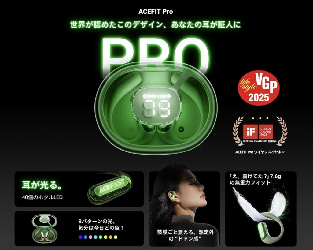 【耳を塞がない】ACEFAST ACEFIT Proレビュー|LEDライト付きオープンイヤーイヤホンを使ってみた