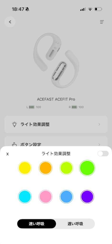 専用アプリ「ACEFAST」でケースのライトの色や点灯パターンをカスタマイズできるのも楽しいポイント。気分に合わせて色を変えられるのはいいですね。
