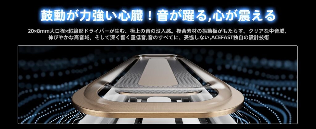 20×8mm大口径×超線形ドライバーとACEFAST独自技術により、オープンイヤー型とは思えないほどの音質を実現しています。
