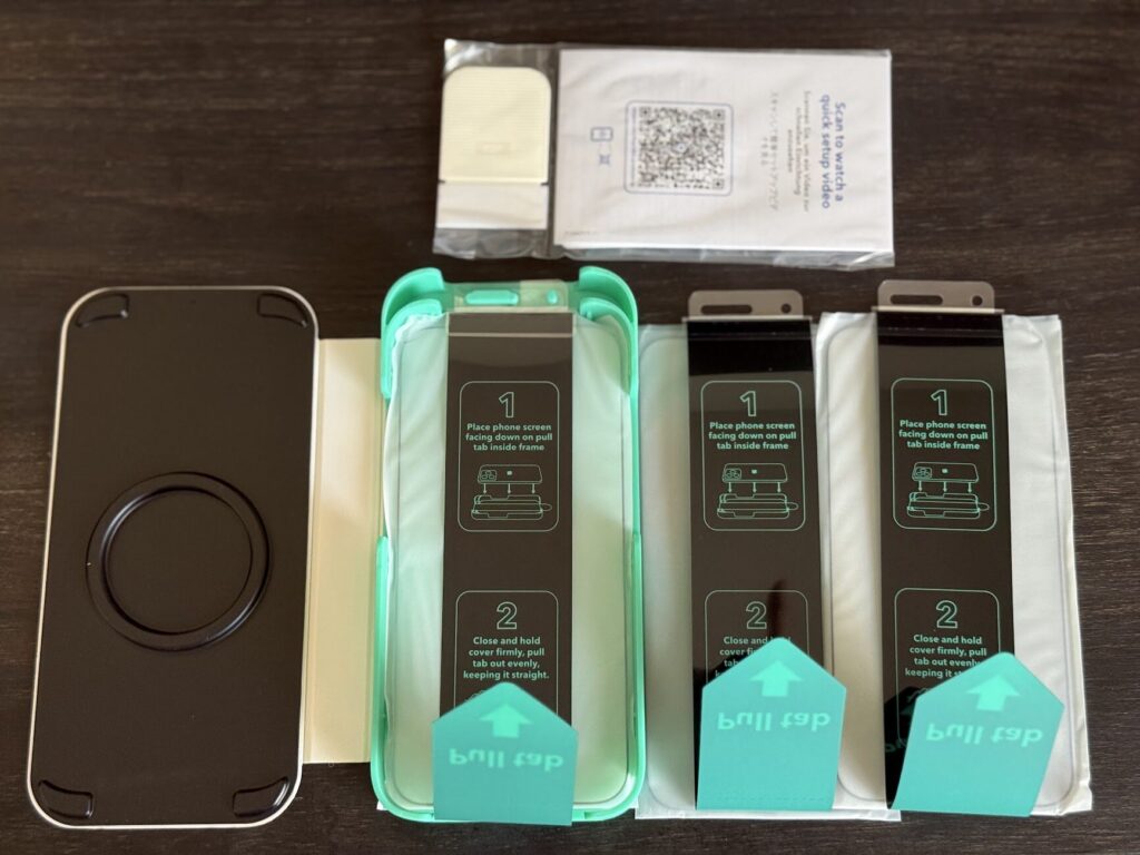 ガラスフィルムは貼り付けガイドのおかげで誰でも簡単・綺麗に貼れるのが最大のポイント。フィルム貼りが苦手な人にこそおすすめしたい商品です。