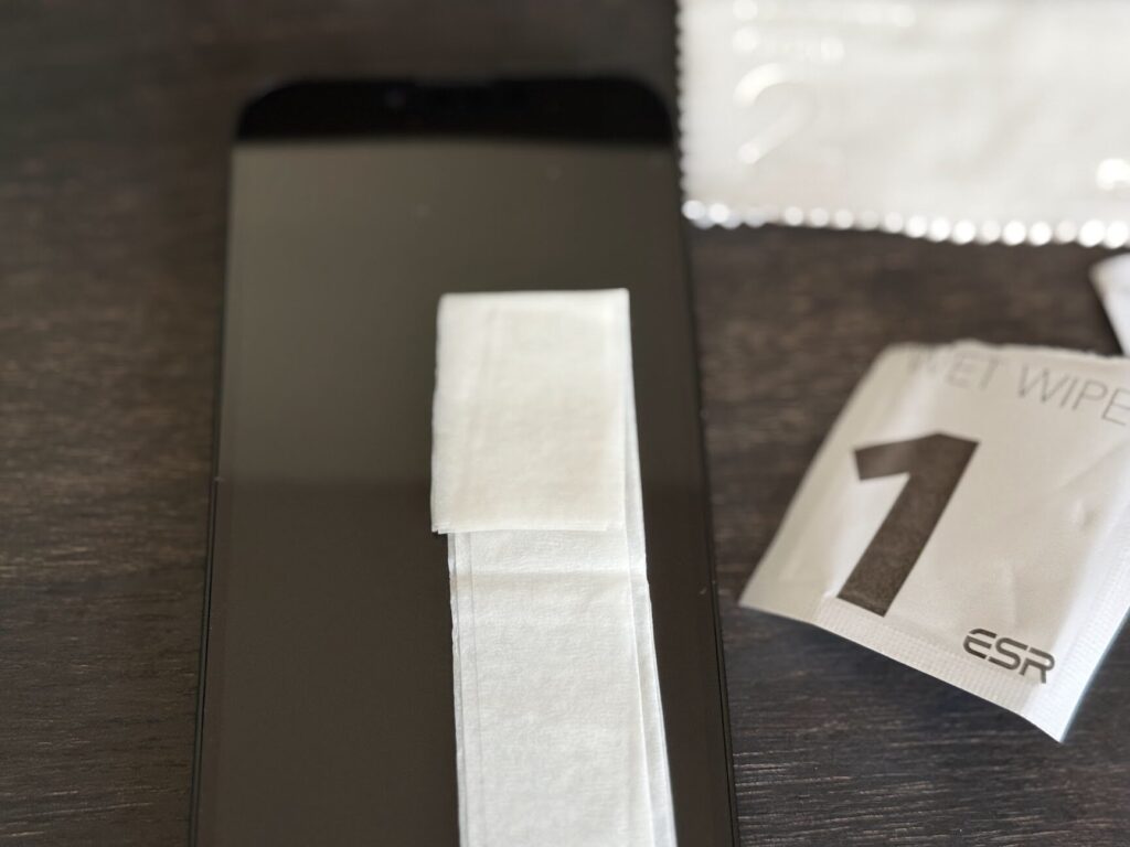 ① アルコールパッドとクリーニングクロスで画面を綺麗にする