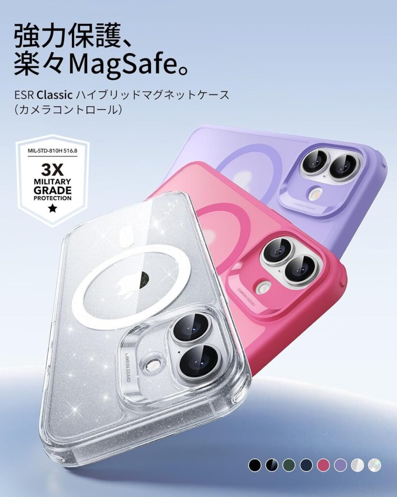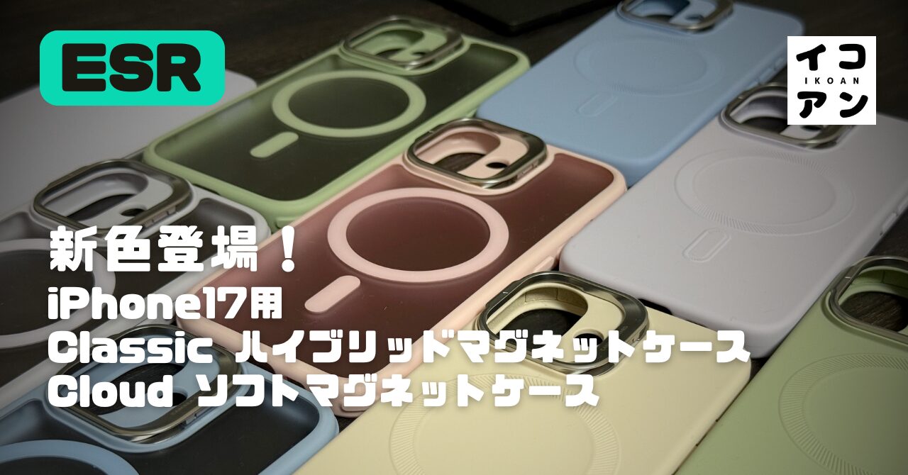 ESR から展開されているMagSafe対応ケースの定番、Classic ハイブリッドマグネットケース/Cloud ソフトマグネットケース(カメラコントロール&隠れスタンド)に新色が追加されました。