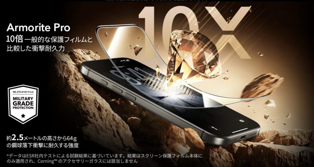 ESRの「ESR iPhone17/16 Pro ガラス保護フィルム」をレビューしました。
