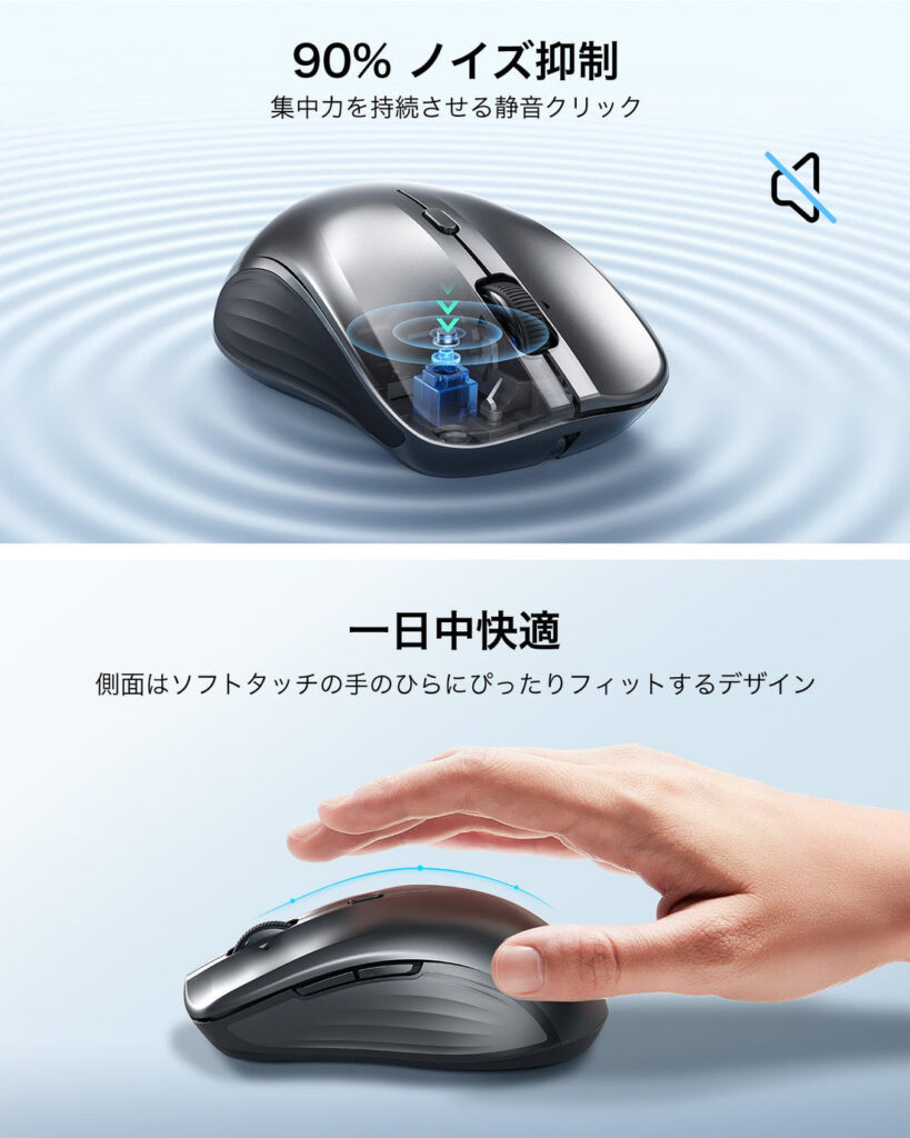 外出先や図書館、カフェなどで作業をする場合、マウスのクリック音が気になることがあると思います。