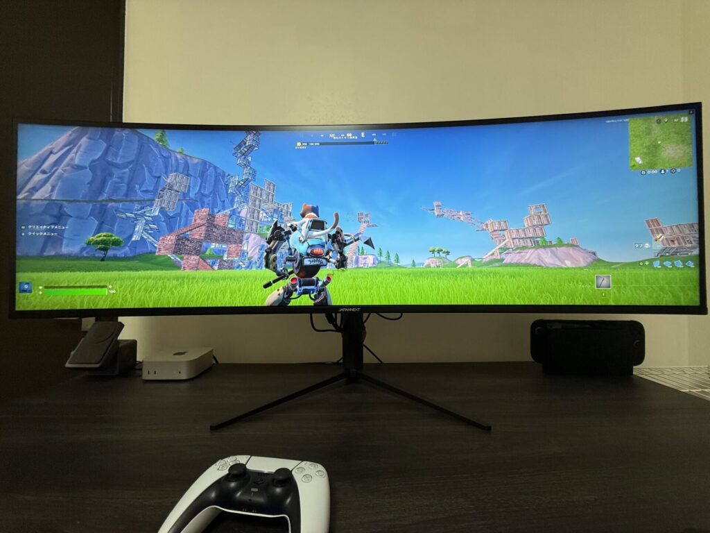 その場合、PBP(Picture by Picture)機能を使って画面を半分にして使用することで対応は可能ですが、せっかくの49インチを活かしきれないのが残念でした。