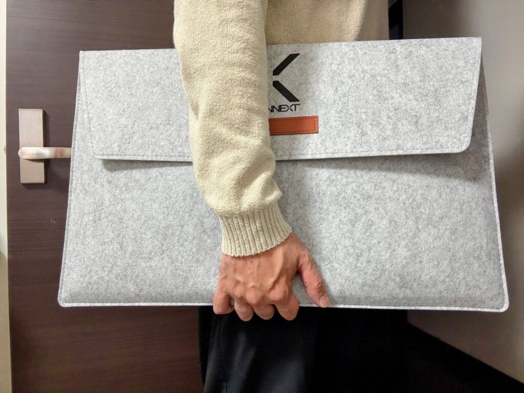 付属品はマニュアル、 保証書、フェルトケース、 電源アダプター、 USB-Cケーブル、