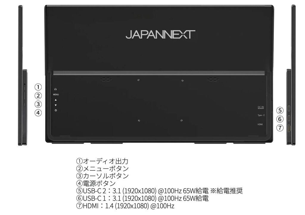 | インターフェイス | HDMI 1.4 (1920×1080) @100Hz USB-C 1 1920×1080 @100Hz 65W給電 USB-C 2 1920×1080 @100Hz 65W給電 |