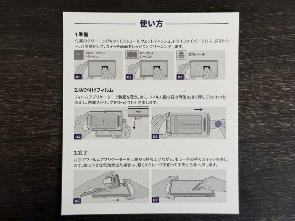 LISEN Switch2 強化ガラスフィルムには貼り付けキットがあるので、そのような苦労をしないで済むのは嬉しい限りです。