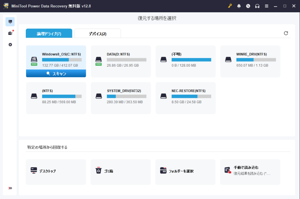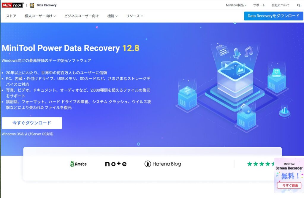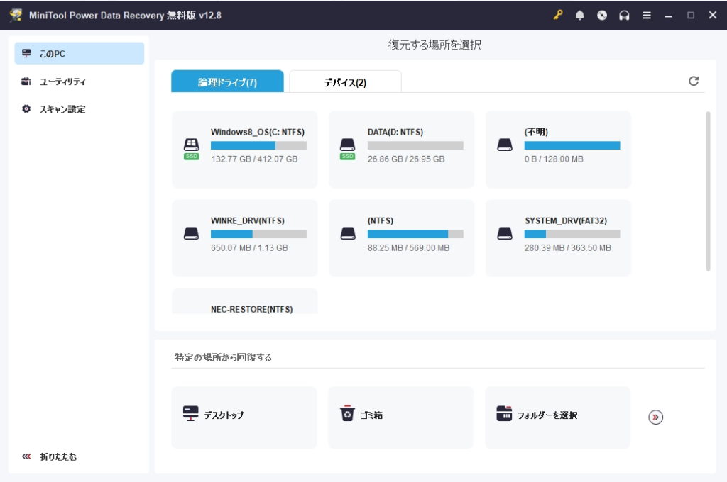 MiniTool Power Data Recoveryは、削除してしまったファイルやフォーマットされたドライブのデータを復元できるデータ復旧ソフトです。