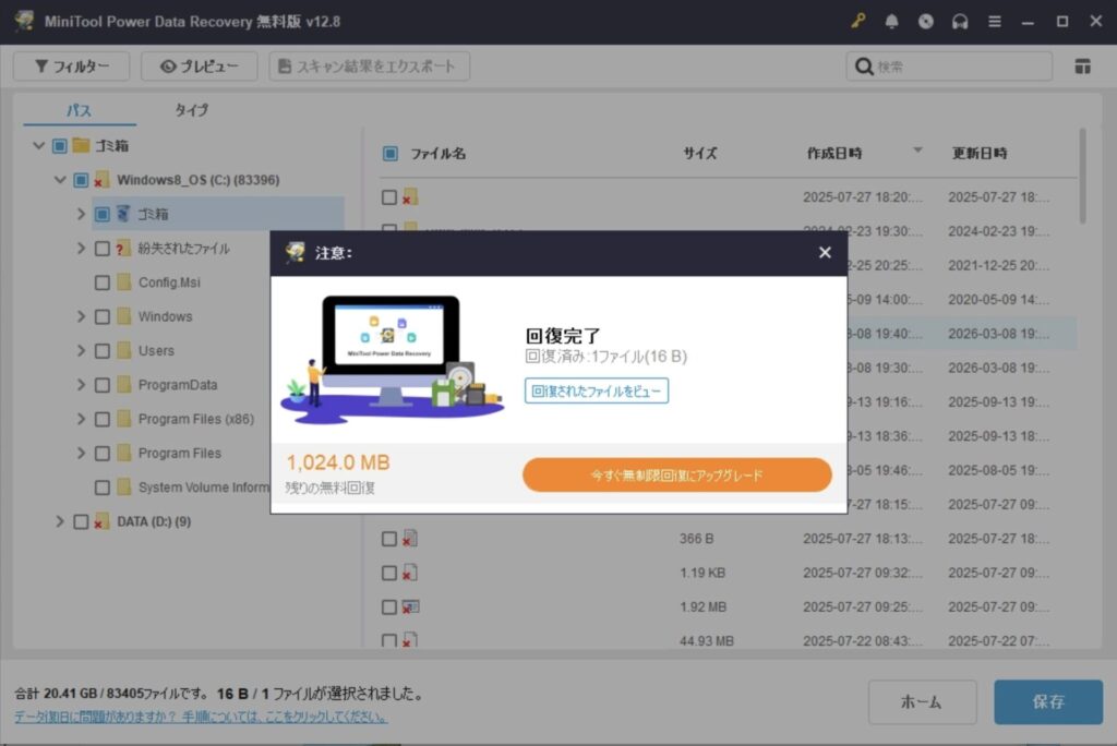そのため、誤って削除してしまった場合はできるだけ早く「MiniTool Power Data Recovery」のような復元ソフトを使うことが重要です。