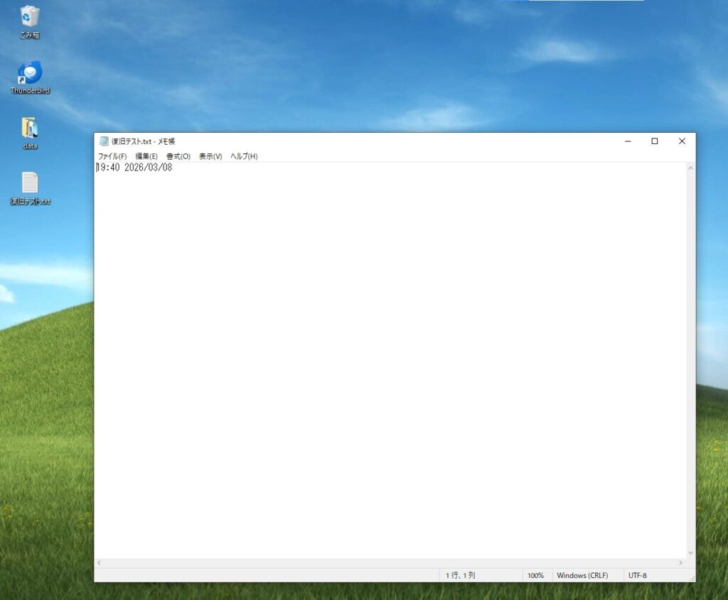 今回はデスクトップにあるファイルを削除し、ゴミ箱に入った状態のファイルを復元できるか試してみます。