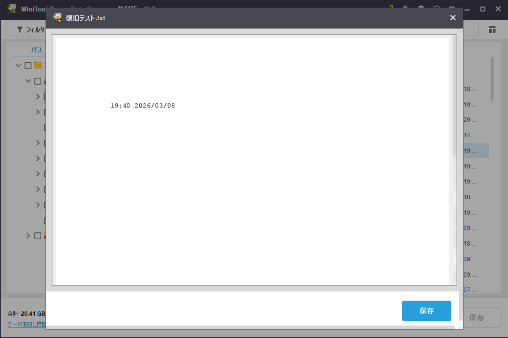 このファイルを復元するために「保存」ボタンをクリックします。