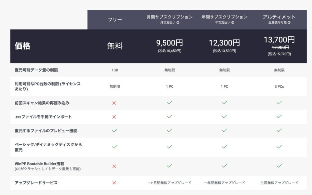 まずは無料版で復元できるか確認できるので、使い勝手を試せるのがポイントです。
