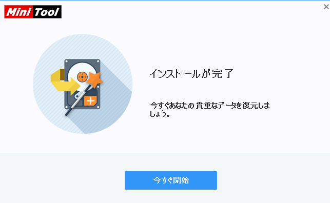 インストール完了画面で「今すぐ開始」ボタンをクリックします。