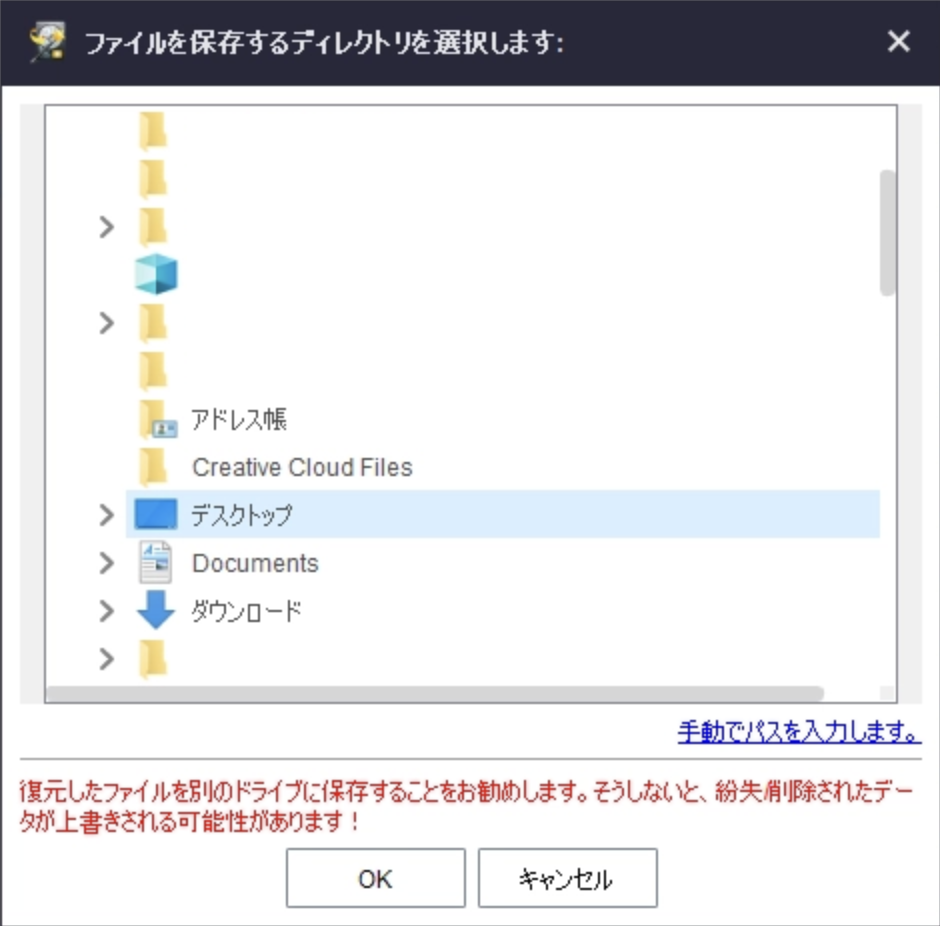復元場所を選択して「OK」ボタンをクリックします。