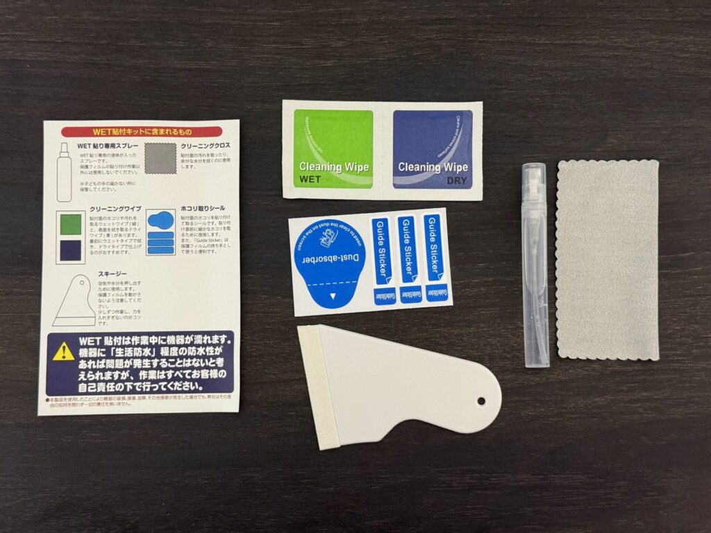 WET貼付キットには水貼りに使える付属品が一通り入っています。