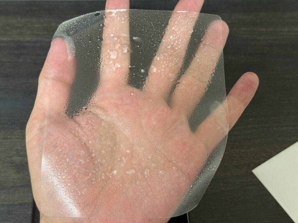 Flexible Shieldの接着面に、WET貼付キットのスプレーを噴霧します。