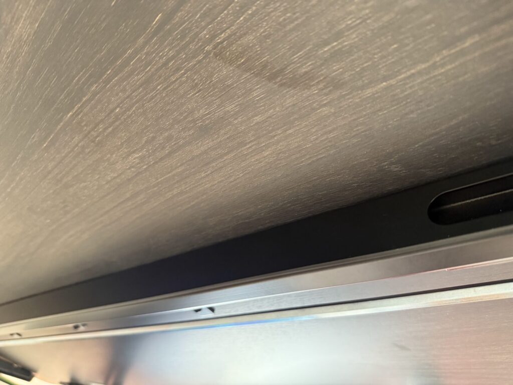 昇降デスクの裏側の金属フレームにも安定して貼り付けることができ、デスクを上下させてもしっかりと固定できます。