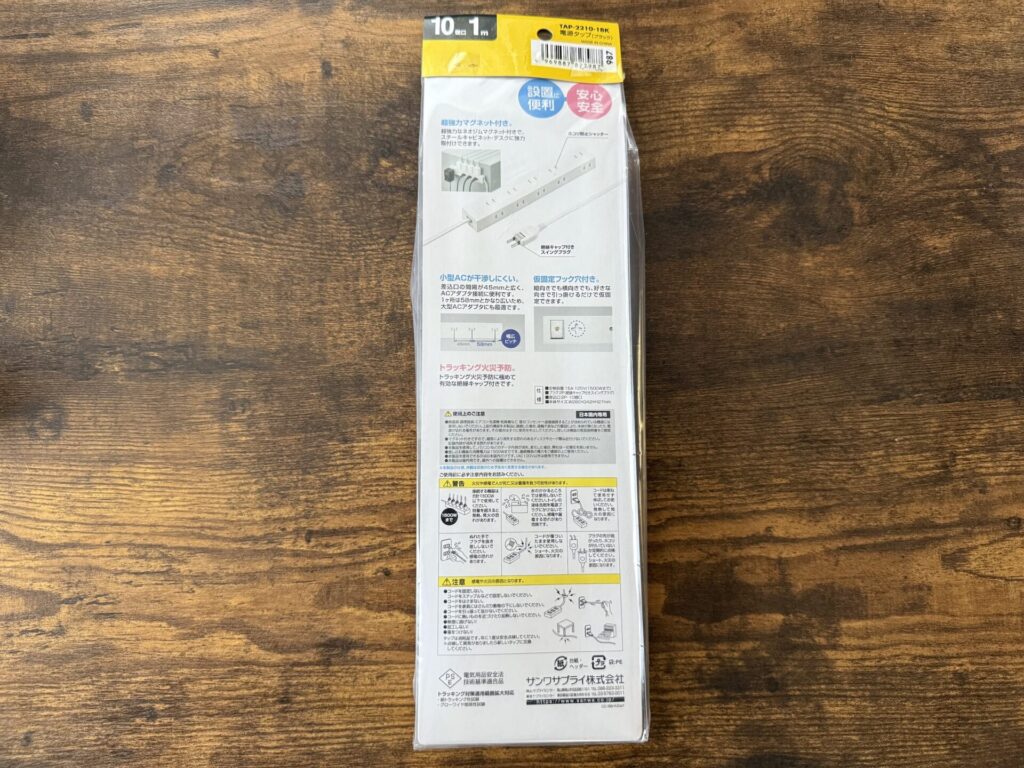 デスク周りの電源タップを床に置いていたのですが、少し整理したいと思ってサンワサプライの電源タップ「TAP-2210-1BK」を購入しました。