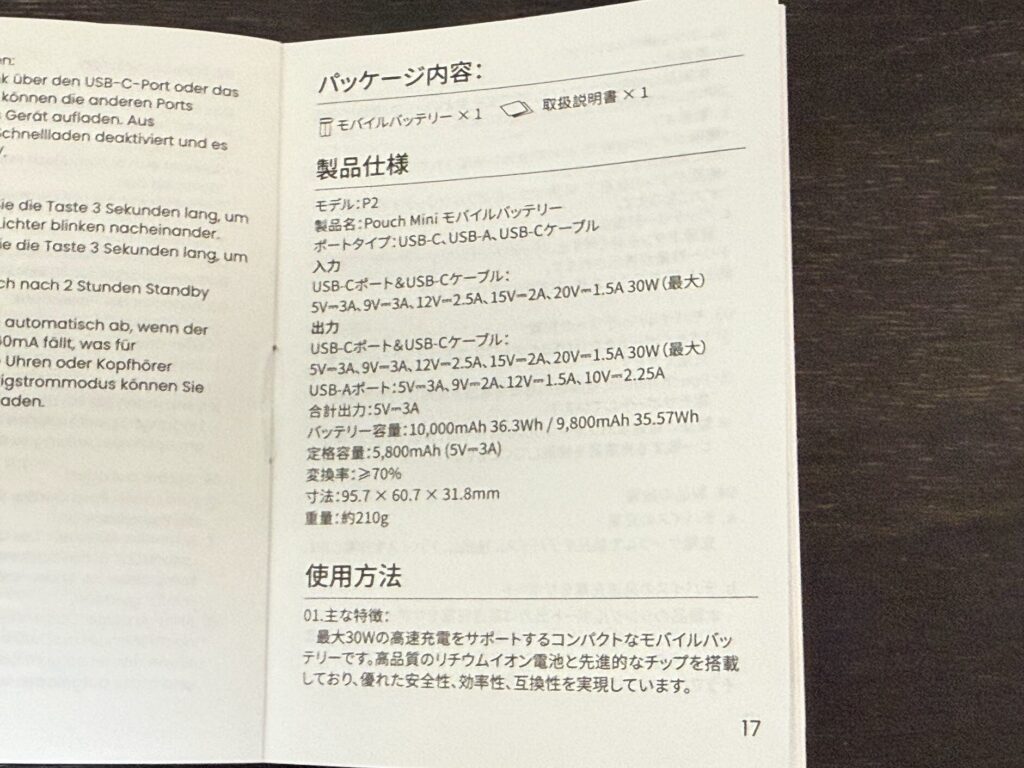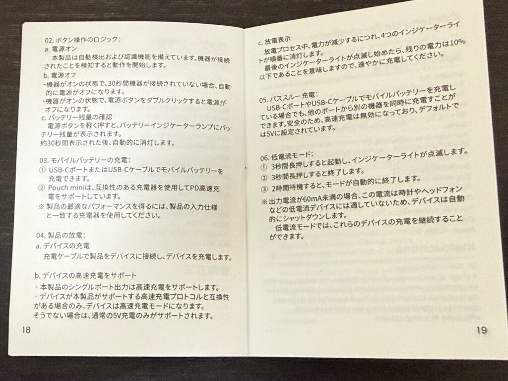 パッケージの中はPouch Mini本体と、ユーザーマニュアル。