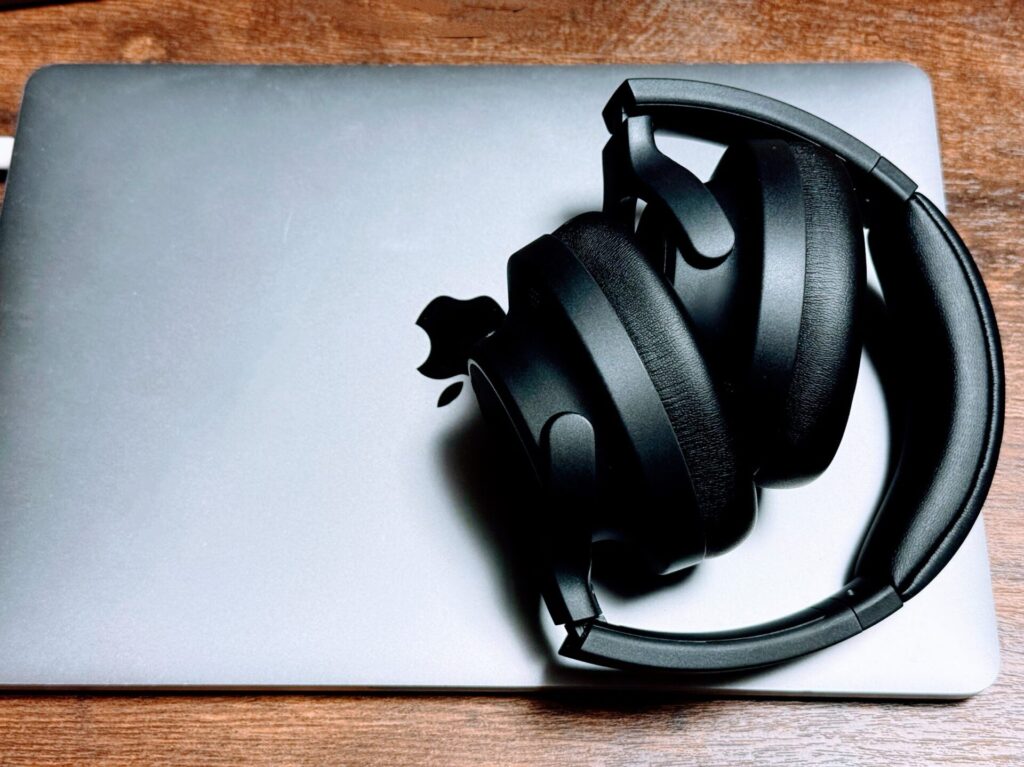 ブラック基調なので、デスク周りに置いても主張しすぎず、仕事用のヘッドホンとしても使いやすい印象でした。