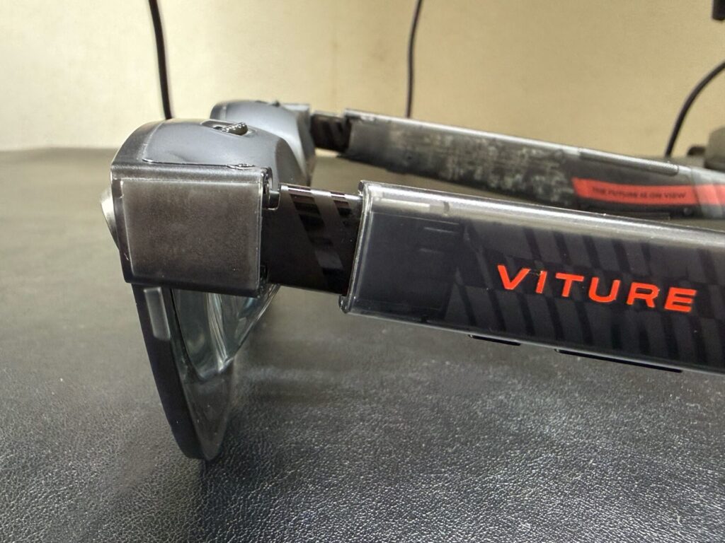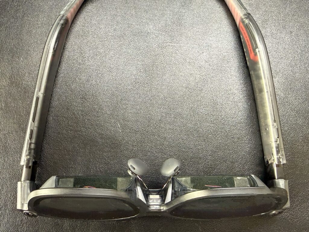 フレームの両端と中央にカメラが搭載されているのが特徴的で、これがトラッキングやハンドジェスチャー操作を可能にしています。(現時点ではPCやスマートフォン用専用アプリやネックバンド型デバイス「VITURE Pro ネックバンド」が必要)