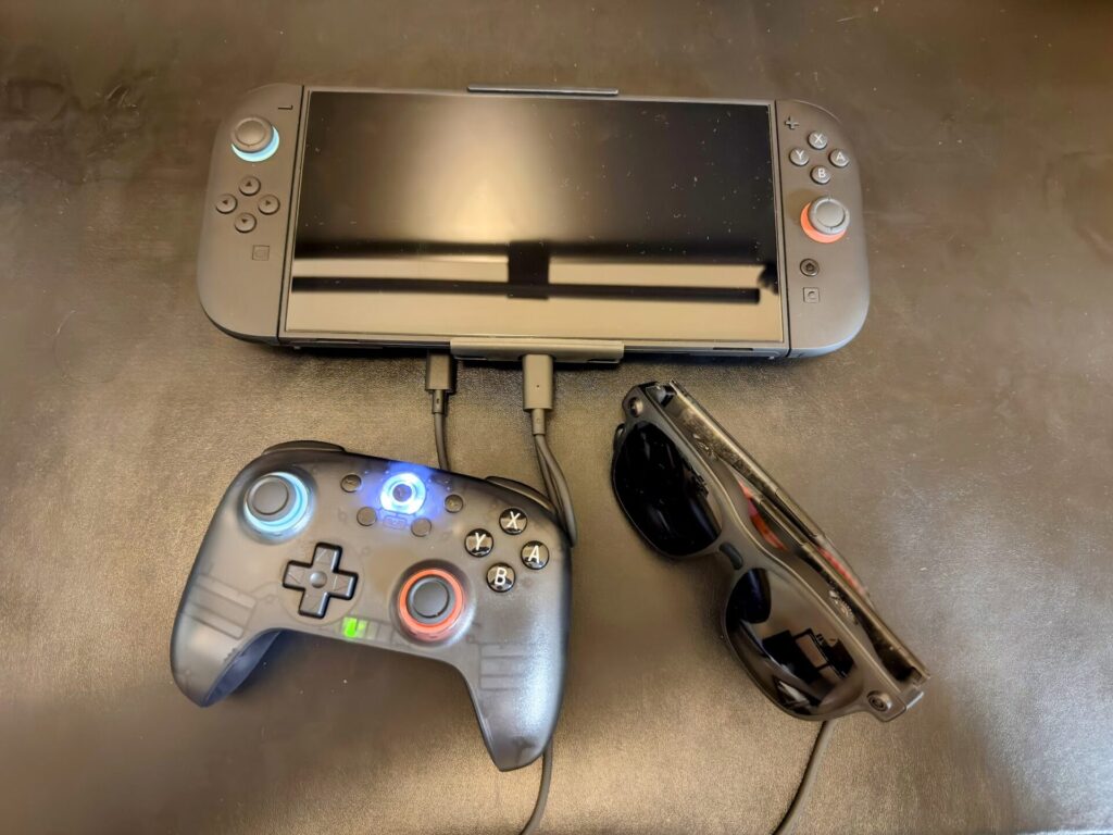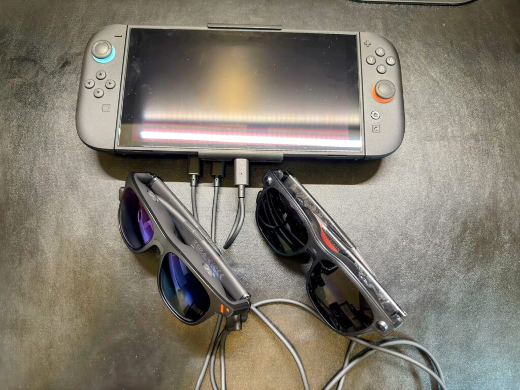 Switch2とモバイルドッグを付属のType-Cケーブルで接続して、XRグラスをモバイルドッグに接続するだけで、Switch2の画面をVITURE Luma Ultraの大画面でプレイすることができます。